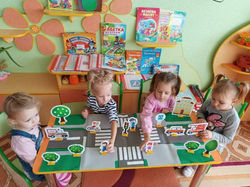 Вихователі з дітками вивчали та закріплювали знання з правил дорожнього руху. Цікаво та повчально проведені тематичні заняття, інтерактивні бесіди,  вікторини, конкурси. Діти із великим захопленням  розповідали, фантазували, переглядали мультфільми, гралися в рухливі, дидактичні, сюжетно – рольові  ігри  про правила дорожнього руху, про транспорт, пішоходів.  Діти продемонстрували добрі знання правил безпечної поведінки на дорозі.